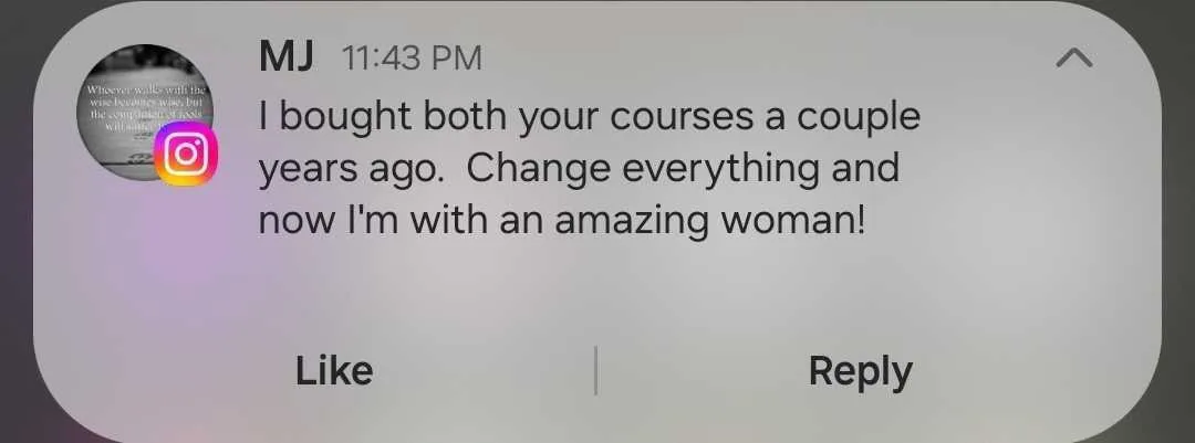 Michael was having trouble with dating after coming out of a looooong relationship. After the program, he feels like he has now "unlocked the code to hacking dating". Even as an older guy, he is equipped with the skillset to never struggle in dating again.
