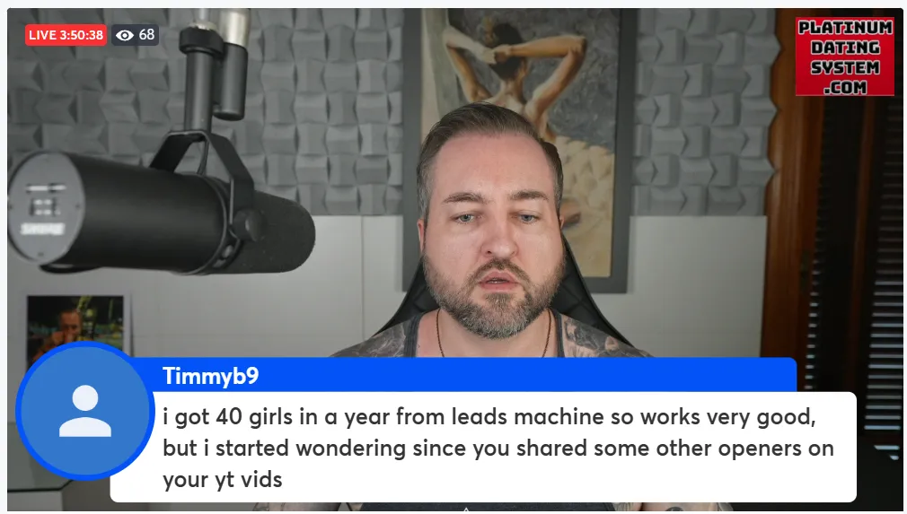 Pat was having trouble getting women's phone number and meeting women out at night. During the program, he was able to triple the quantity of phone numbers he got when he whenever he went out.