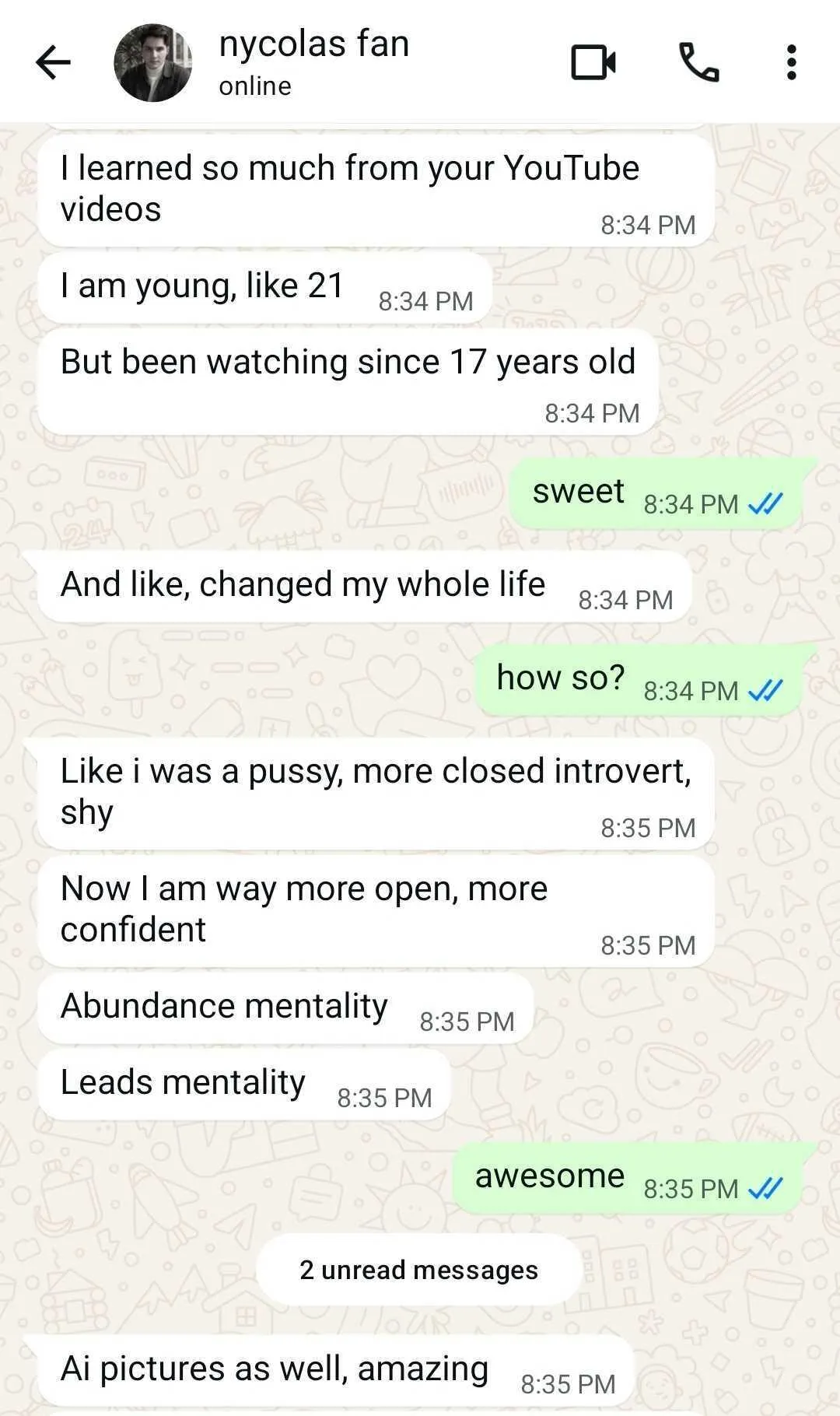 Joe wasted a ton of time watching YT videos, trying to fix his dating life and learned nothing. He knew he needed to change that. After the program, in only 2 weeks, Joe was able to get 7 new women. Joe had surpassed 200+ women over the period of a couple years, and is living a top 1% dating life most men would only dream of.